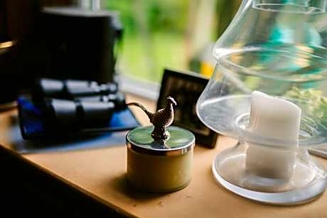 The Green Room: A spacious double room furnished to an excellent standard, with en suite shower, antiques, toiletries, luxury towels and bathrobes.
