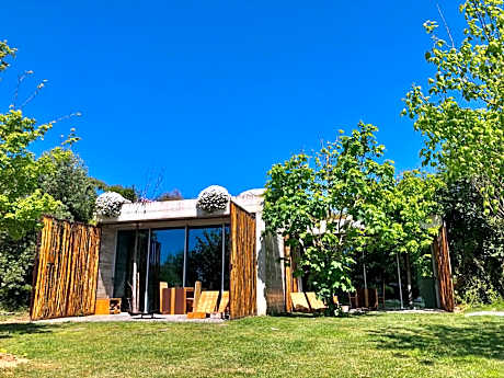 Nestled among tranquil surroundings, the eco-design Rio do Prado, offers luxury, energy efficient suites featuring floor-to-ceiling windows with garden views. There are 2 outdoor pools a sun terrace and 5 lakes. Merged with Nature, the open-plan suites feature eco-chic décor, floor-to-ceiling windows, indoor and outdoor fireplaces, as well as a seating area with air conditioning, a sofa, flat-screen TV, a coffee machine, a mini-bar and free WiFi. All have a shower area and most feature a relaxation bathtub. Guests can enjoy traditional Portuguese tapas at the Maria Batata Restaurant. Several café’s and bars are within a 10-minute drive away. Rio do Prado have massage services, they are available upon requests and previous reservation. Guests can sunbathe poolside or on the sun terrace. Local activities include hiking, horse riding and golf. Peniche is a 20-minute drive away by car. The historic village of Óbidos is 2.5 mi away. Rio do Prado offers free parking on site and offers an auditorium with several meeting facilities. Please notice that if wanted the guest must previously request an outdoor fireplace in the respective suite at the time of booking for an extra fee of € 20 per day. License Number(s): 5851