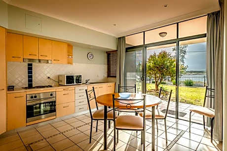 Riverside Holiday Resort Urunga are a multi award winning property located along the Bellinger and Kalang Rivers. Riverside Holiday Resort offers 40 x two-bedroom, self-contained apartments with access to a variety of shared facilities, including a large salt water pool, children's playground, trampolines and picnic areas with electric BBQ facilities. Free WiFi is also available throughout the resort. Riverside Resort is a 15-minute drive from Bellingen Valley, a 20-minute drive from Nambucca and a 45-minute drive from Dorrigo and a 25-minute drive from Coffs Harbor. Each apartment at Riverside Holiday Resort features air-conditioning, heating and a fully equipped kitchen with an oven, refrigerator, stove top, microwave, toaster and kitchenware & coffee machine. A tumble dryer, iron, washing machine, DVD player, TV and a patio with outdoor furniture are provided. Guests can venture next door to the C.ex Urunga Golf and Sports Club for a meal or to play golf, croquet, or tennis. All clubs, shops, restaurants and pub are within short walking distance from the resort, along with the famous accessible Urunga Boardwalk. In 2021 Riverside Holiday Resort, entered the "HALL OF FAME" at the NSW Tourism Awards for winning GOLD three years in a row in the "Self Contained Accommodations Category", we also received Bronze at the AUSTRALIAN tourism awards meaning Riverside are the 3rd best self contained accommodations in all of Australia, this is an unbelievable achievement. In 2022 Riverside Holiday Resort, entered the "HALL OF FAME" again at the NSW Tourism Awards for winning GOLD three years in a row in the "Excellence in Accessible Tourism". Riverside Holiday Resort Urunga are run by a not for profit organization that own and operate three holiday resorts along the East Coast on NSW.