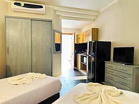 Royal Beach Serviced Apartments Resort is located in the northern part of Hurghada and offers beachfront accommodations with two private swimming pools. It is just 7.5 mi from the popular destination of El Gouna. The resort features a 24-hour front desk and provides free Wi-Fi in public areas. Each apartment is equipped with air conditioning, a flat-screen TV with satellite channels, a microwave, an electric kettle, and a wardrobe. The private bathrooms include a shower and complimentary toiletries. The resort’s beach is a popular spot for kite surfing and windsurfing. Royal Beach Serviced Apartments is conveniently located about 9.3 mi from Hurghada New Marina, Hurghada International Airport, Giftun Island, and Mahmya Island. The resort is located near the center of North Hurghada, in the Ahyaa area, where guests can find grocery stores, supermarkets, bakeries offering fresh local and international pastries, as well as a variety of restaurants. Public transportation is easily accessible and can take you to different parts of Hurghada or other cities across Egypt.
