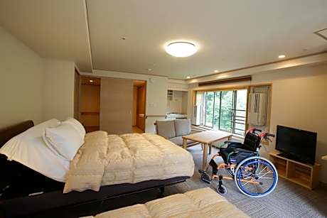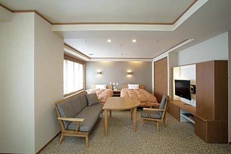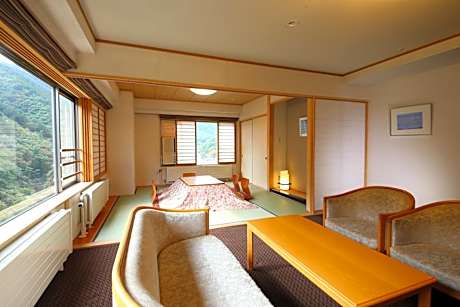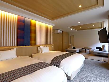 Spacious room featuring a living area with a tatami (woven mat) floor, a flat-screen TV and a kitchenette. It comes with twin beds, an private bathroom and yukata robes. Complimentary green tea is provided.