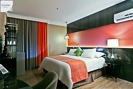 Sandri Palace Hotel is a modern hotel located 1 block from Itajai´s renowned gastronomic plaza. Its complete leisure infrastructure includes a swimming pool, sauna and gym. WiFi is free. Rooms at Hotel Sandri Palace have discreet pale cream interiors filled with soft yellow lighting. All are equipped with air conditioning, cable TV and a mini-bar, and new private bathrooms. The restaurant serves classical French cuisine infused with local flavors and ingredients. Guests can enjoy a breakfast buffet with omelets, quiches and fresh cakes, and 24-hour room service is available. Sandri Palace Hotel also features 15 meeting rooms, an auditorium that can fit 400 people and a complete business center. The hotel is conveniently located only 3.7 mi from Navegantes Airport and 5 mi from Balneário Camboriú Beach. When booking 4 rooms or more, different policies and additional supplements may apply.