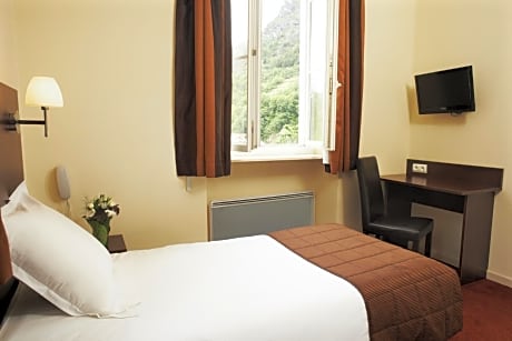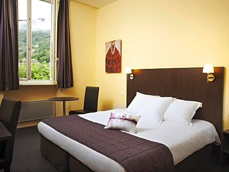 Savoy Hôtel is located in the heart of Brides-les-Bains, which is linked directly to Méribel by the Olympe gondola elevator (984 feet), in the largest ski area in the world. It offers comfortable and practical rooms with private showers, flat-screen TV with satellite channels and free Wi-Fi internet access. The Savoy is also just a 2-minute walk from the Grand Spa Thermal. On site you will find an outdoor heated swimming pool and hot tub for the summer months and a sauna for any time of the year. Savor characteristic regional specialties in the relaxed atmosphere of the Savoy Hôtel’s charming restaurant. The bar has a terrace and is open all year long. Free private parking is provided at the Savoy Hôtel, making it easy to explore the Rhône-Alpes region by car.