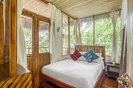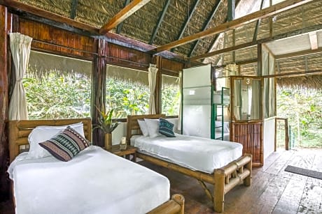 Located in the upper Amazon basin on the shore of the Napo River in Tena, this lodge offers private rooms and shared dormitories to offer. All with unique views of forest or river. The cozy wooden bungalows are designed according to traditional architecture.The natural lighting with oil lamps and characteristic Amazon torches to keep the essence of the Amazon environment. The private balconies include either chairs or a hammock. Socialtel Amazon Tena, features a lounge with a fireplace. Exchange your travel experiences with other travelers or relax while reading a book, listening to the amazing sounds of the jungle. Electric outlets available at the front desk. The restaurant serves Ecuadorian traditional dishes and international cuisine with fresh local ingredients. Exotic drinks are served at the bar. Breakfast is served à la carte. Centrally located between Quito and Baños. Socialtel Amazon Tena enables you to design your own Amazon tour each day during your stay at the lodge.