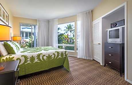 TA-063-691-1616-01 Escape to a serene Big Island oasis at Holua Resort at Mauna Loa Village. This tropical resort is nestled along the gorgeous Kona Coast with nearby beaches, a marina and right next door to an 18-hole championship golf course. Holua Resort is a quiet oasis tucked away from the town traffic and crowds, yet only two blocks from shopping, restaurants, and movie theaters. Plus, there's a wide array of golf courses and beaches, as well as hiking, biking, and horseback riding trails within close proximity. In under an hour, you can find yourself on the glistening white sandy beaches of Hapuna Beach State Park - voted #1 top beach in 2021 from CNN Travel. Stretch out in your spacious resort suite with a full kitchen and private lanai. These one- and two-bedroom resort suites comfortably sleep four to six guests. Suites feature one king bed in the master, one king or two twin beds in the guest room and a queen sleeper sofa in the living area. You will appreciate private bedrooms, the economy of a fully equipped kitchen, and the convenience of a washer/dryer in each suite. Plus, a full living/dining area and complimentary Wi-Fi will keep you connected. Whether you want to relax in the sun, enjoy time with the family or play golf under palm trees, this beautiful tropical resort provides the perfect setting for all your plans. Stroll through the tropical gardens with lava rocks, fountains, palms, and manicured grounds to find six swimming pools, six hot tubs, eight tennis courts, 20 pickleball courts, eight barbecue grilling areas and a newly renovated workout room. The resort offers a variety of onsite activities such as lei making, Hawaiian crafts and botanical tours. Be sure to join us for our complimentary weekly keiki (child) hula show where you will be taken on a musical voyage of Polynesian dance.