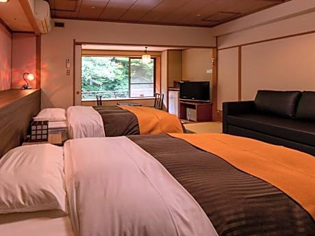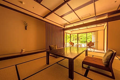 Providing river views, Shima Yamaguchikan in Nakanojo offers accommodations and an open-air bath. Each accommodation at the 3-star ryokan has mountain views, and guests can enjoy access to a hot spring bath and a public bath. The ryokan provides rooms with air conditioning, free private parking, and free Wifi. The ryokan offers a seating area with a flat-screen TV and a private bathroom with a hair dryer, free toiletries, and bath. A fridge and kettle are also provided. At the ryokan, all units are equipped with bed linen and towels. Shima Yamaguchikan offers an à la carte or Asian breakfast. There is a coffee shop and lounge. The ryokan is located in a geothermal area, with a number of hot springs for guests to relax in. Naeba Ski Resort is 29 miles from the accommodation, while Ishidan-gai Steps is 21 miles away. Matsumoto Airport is 86 miles from the property.