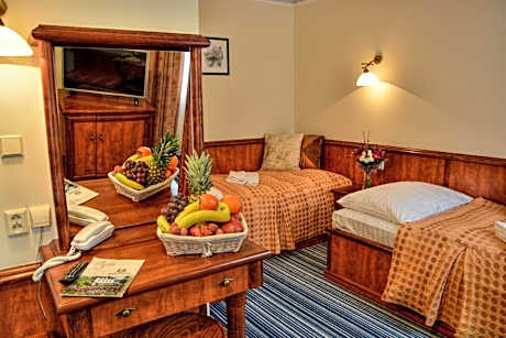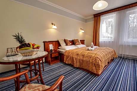 Located in Mariánské Lázně, 1.1 miles from Colonnade by the Singing Fountain, Spa & Wellness Hotel Harmonie has accommodations with a garden, free private parking, a terrace and ski-to-door access. Located around 1.2 miles from The Singing Fountain, the hotel with free WiFi is also 12 miles away from Castle and Chateau Bečov nad Teplou. The property provides room service, a tour desk and currency exchange for guests. The rooms at the hotel come with a seating area, a flat-screen TV with satellite channels, a safety deposit box and a private bathroom with a shower, free toiletries and a hairdryer. All guest rooms will provide guests with a desk and an electric tea pot. Buffet and continental breakfast options are available at Spa & Wellness Hotel Harmonie. At the accommodation guests are welcome to use a hot spring bath. The area is popular for hiking and skiing, and ski equipment rental is available at this 3-star hotel. Market Colonnade is 29 miles from Spa & Wellness Hotel Harmonie, while Mill Colonnade is 29 miles from the property. Karlovy Vary International Airport is 22 miles away.
