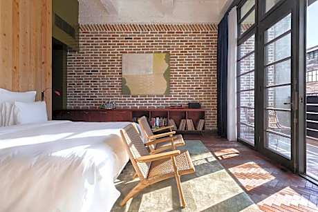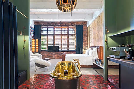 Oversize windows, replicas of the original façade, flood the space with natural light, and well-appointed features such as super king size beds,19th century-inspired brass showers, and McIntosh sound systems ensure comfort and style with the deep red artisan tiles. The 52sqm guestroom has views over the hotel's courtyard gardens, for a suitably green view. A deluge of floor-to-ceiling bookshelves, which border the guestrooms walls, soften the pace and frame where the smooth, white couch is placed.