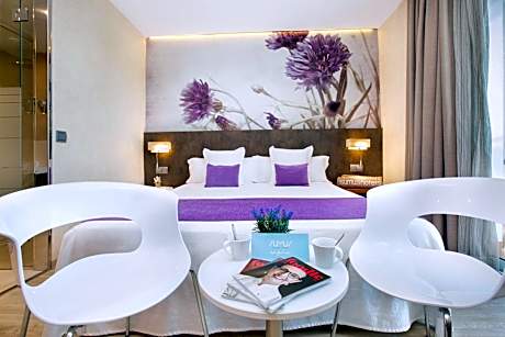 With its unique split-level swimming pool, the impressive Sumus Hotel Monteplaya-Adults Only holiday hotel is a great place to enjoy a sunny holiday in Malgrat, on the Costa Maresme. There is free WiFi throughout. Sumus Hotel Monteplaya is built around a pleasant garden and outdoor swimming pool. The pool’s usual design sees a waterfall connecting its 2 levels – a unique place to enjoy the warm Catalan sunshine. Take the short, 50-yard walk to Malgrat’s sandy beach to bathe in its clear, Mediterranean waters. You can also stay active at the nearby sports center or spend a cultural daytrip in Barcelona, an hour’s train ride away. Each evening, head to Sumus Hotel Monteplaya’s buffet restaurant to enjoy a delicious meal. Then finish off the night with a refreshing drink in the hotel bar.