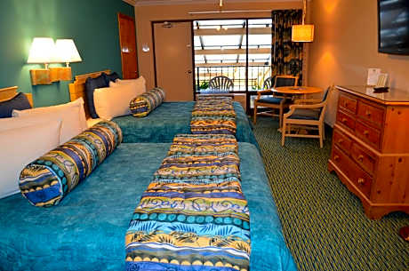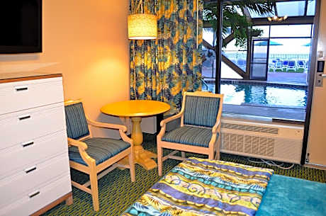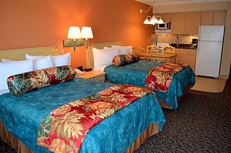 Located directly on Daytona Beach, this hotel offers heated indoor and outdoor pools and a 60-foot waterslide. Ocean Walk Village, offering shopping and entertainment, is 3 miles away. The brightly colored guest rooms at the Sun Viking Lodge feature cable TV, a microwave and fridge. Some rooms include a full kitchen with full oven, stove and kitchenware. Select rooms feature a balcony. Additional recreational facilities at the Sun Viking include an oceanfront hot tub, children's pool, gym and sauna. Guests can also enjoy gas barbecue grills and a children's playground. Both parking and Wi-Fi are free. Daytona International Speedway and Daytona Beach International Airport was within 8 miles of the hotel. The Hawaiian Falls Golf Course is .1 miles away.