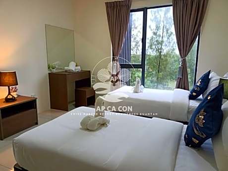 Providing garden views, Swiss Garden Resort Residences Kuantan by AP CA CON in Kampung Sungai Karang provides accommodations, an outdoor swimming pool, a fitness center, a shared lounge, a garden and a private beach area. The apartment features both WiFi and private parking free of charge. All units here are air-conditioned and feature a flat-screen TV, a living room with a sofa, a well-equipped kitchen with a dining area, and a private bathroom with bidet, a hairdryer and free toiletries. Some units include a patio and/or a balcony with lake or pool views. Swiss Garden Resort Residences Kuantan by AP CA CON has a playground. A water park is available on site and cycling can be enjoyed within close proximity of the accommodation. Popular points of interest near Swiss Garden Resort Residences Kuantan by AP CA CON include Balok Beach, Batu Hitam Beach and Kampong Pantai Sungai Karang. The nearest airport is Sultan Haji Ahmad Shah, 16 miles from the apartment, and the property offers a paid airport shuttle service.