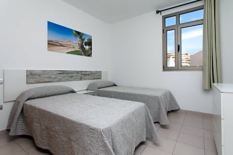 This property has 58 apartments, distributed in 3 floors, completely equipped to have the best stay. After stepping in, you will find the reception in a large and bright lobby. The modern and colorful decoration, with some spectacular big images of Fuerteventura, will give our guests a fresh and modern feeling right from the arrival. The building has a roof-top swimming-pool and many equipped terraces with very nice views over the sea and the mountains as background. Without any doubt, you will enjoy the tranquillity of the place and the friendly staff that will make you fell like home.