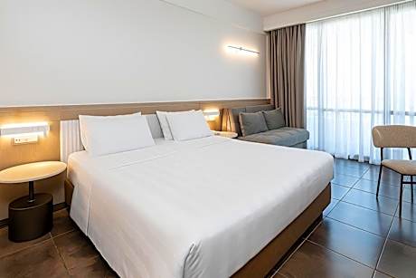 Located on the beach of Agia Marina, 5.6 mi from Chania, adults-only Thalassa Beach Resort offers a spa and a sea-facing pool. Its stylish rooms have floor-to-ceiling windows with stunning sea, garden or inland views. The elegant rooms are fitted with parquet floors and climate control. In-room media includes a satellite TV. Bathrooms come with a bathtub, body care products, hairdryer and magnifying mirror. Rooms include a full-length mirror. Fine dining is proposed at the a la carte main restaurant. A lighter fare is available at the snack bar, while the beach tavern serves Greek meze. Private dining on the beach can be arranged. Massage rooms and indoor pool are featured in the hotel spa. Just 0.6 mi off the National Road, Thalassa Beach Resort is 16 mi from Chania Airport and 9.3 mi from Souda Port. A small underground parking is provided on site.