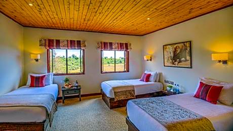 Quirky and iconic, Noah Ark is set in the heart of the Aberdare National Park, in Nyeri. The lodge overlooks a watering hole and salt lick, attracting a variety of wildlife, and features four viewing areas, including a ground-level bunker. The rooms at Noah Ark are modeled after cabins, and each comes with a private bathroom with a shower and free toiletries. Free WiFi is available in the public areas. Breakfast and dinner are served in the on-site restaurant, as either a buffet or set-menu offering, while lunch is served at The Ark's sister property. Lunch can be organized at Noah Ark by prior arrangement. Guests can also enjoy a drink from the bar. Guests at the lodge can also make use of the Library or browse through the gift shop.