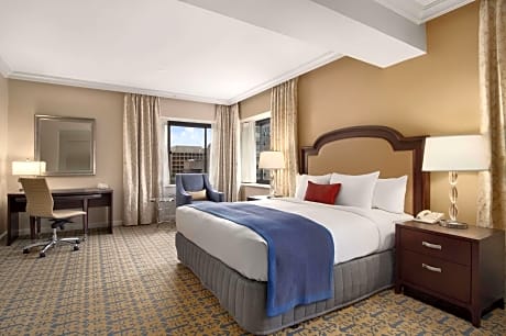 In the heart of Washington, D.C. city center, this historic hotel has an on-site restaurant and bar and a 24-hour front desk. The Metro Center station of the Washington Metro line is 2953 feet from the Capital Hilton, providing easy access to all of Washington D.C.'s attraction. All rooms and suites at Capital Hilton are air-conditioned and have a private bathroom with free toiletries. On-site dining choices include North Gate Grill and The Statler Lounge. North Gate Grill offers a breakfast menu with fresh fruits, juices, omelet bar and freshly baked pastries and breads. WiFi is available in the lobby areas free of charge. A fitness center with cardio equipment, plyometric training boxes, studio room and weights is provided. The Capital Hilton is two blocks from the White House. The Washington Convention Center is 0.7 mi from the property. Ronald Reagan Washington National Airport is 4.6 mi away.