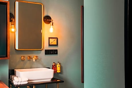 This room is located on the ground floor and features a double bed, an electric kettle and a Nespresso coffee machine. The double bed is on an elevated platform and only accessible via small stairs. It features a separate rain shower and a separate toilet. This room type is not recommended for people who have difficulty moving around.