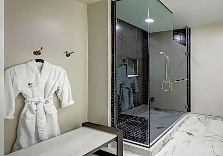 - Osłona akrylowa oddzielająca gości od personelu w głównych obszarach kontaktu