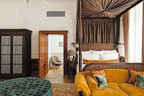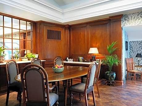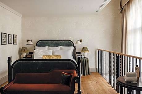 Each 20-30 square-yard room comes with a double bed and period touches such as a leather-top drum table, a pair of carved oak chairs and a dressing table. The rooms’ Edwardian feel is enhanced by hand-finished details including silk tassel Victorian lampshades and bespoke floral wallpaper based on an original 1920s design. Marble mosaic bathrooms contain a walk-in rainforest shower, along with a range of full-size Cowshed products.