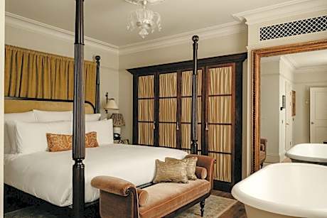 Set in the former Midland Bank building in the City of London, just steps from Bank Station, The Ned hosts 250 bedrooms, ten restaurants and a range of men’s and women’s grooming services. The Grade I-listed building was designed by Sir Edwin 'Ned' Lutyens in 1924. Each bedroom at The Ned features elements of design back to the 1920's and 1930’s and includes vintage pieces, patterned furnishings and rainforest showers. The former Grand Banking Hall is host to restaurants which serve a wide range of cuisines, from Britain to Northern Italy, North America to Asia. Six private hire rooms and two terraces are at guests’ disposal. They all have a reception area. Ned’s Club Spa offers a variety of treatments – from manicures and pedicures, to massages and hair services. The private member's spaces, Ned's Club Gym and Ned's Club Spa pool may be accessed through purchasing day passes, subject to availability. The property is within a short walk from St. Paul’s Cathedral and within 15 minutes from Oxford Street and the West End, by tube. Bank Station also offers a direct DLR connection to London City Airport, which can be reached in 30 minutes.