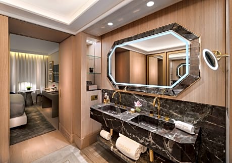 Fitted with parquet floor, this elegant room comes with 1 extra-large double bed and a spacious marble bathroom with a rainfall shower. There is a 55-inch smart TV with international channels, a media hub with international plug sockets and a Nespresso Coffee Machine.