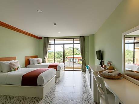 The Pineapple Hotel provides flawless service and all the necessary facilities for visitors.Stay connected with your associates, as complimentary Wi-Fi is available during your entire visit. To facilitate your arrival and departure, you can pre-book airport transfer services prior to checking in.The hotel offers taxi and shuttle amenities for your ease in navigating around Krabi. When arriving by car, you'll be grateful for the on-site complimentary parking at hotel.The hotel offers reception amenities including luggage storage and safety deposit boxes to ensure a comfortable stay for guests.Should you require assistance, the ticket service and tours can also aid in booking tickets and securing reservations at the finest shows and events in the vicinity.Whether it's an extended stay or simply needing fresh attire, dry cleaning service and laundry service provided by hotel ensures your cherished travel garments stay spotless and accessible.Your stay will be comfortable with the presence of room service and daily housekeeping as an in-room amenity for your relaxation and enjoyment. Need something at the last minute? The convenience stores has you covered, ensuring your requirements are met without any inconvenience.To ensure the well-being and convenience of all visitors, smoking is strictly prohibited throughout the entire hotel. Smoking is permitted solely in the specified smoking zones allocated by hotel. In order to ensure the utmost level of relaxation, the guestrooms feature an inviting design and are equipped with all basic necessities, creating a delightful stay experience.To ensure a pleasant stay, a selection of rooms at hotel come furnished with linen service, blackout curtains and air conditioning, all designed with your ease in mind. Several chosen accommodations at The Pineapple Hotel have a balcony or terrace incorporated into the room design.Selected rooms offer in-room amusement like television as a source of entertainment for guests to enjoy.Within specific rooms, a refrigerator, bottled water, a coffee or tea maker, instant coffee and instant tea is conveniently available for your use. Understanding the significance of bathroom facilities in enhancing visitor contentment, hotel offers a hair dryer, toiletries and bathrobes within a few chosen chambers. Various excellent meal offerings at hotel ensure that enticing and easily accessible options are constantly available.Upon your arrival, don't miss experiencing karaoke rooms for enjoyable in-house evening entertainment.Throughout the day, engage in the entertaining activities available at The Pineapple Hotel. Make sure to discover the readily available beach at hotel.Unwind effortlessly each day by exploring the massage, conveniently situated within the hotel.Unwind by the pool at hotel and cherish a leisurely moment.Guests who enjoy maintaining their fitness regimen while on holiday can visit the fitness center provided by hotel.