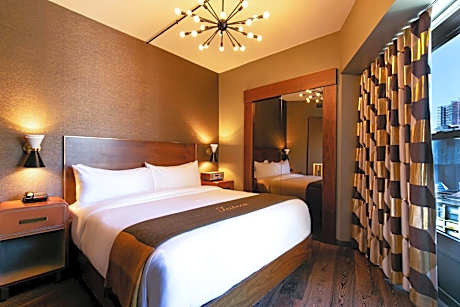 This Tribeca hotel welcomes you with a complimentary glass of champagne on the weekends and offers free WiFi. Canal Street underground station is 1588 feet away. All rooms at The Roxy Hotel Tribeca have a work desk and a seating area. Bathrobes and complimentary toiletries are provided. The rooms also come with a flat-screen cable TV. The Roxy Bar & Lounge features an 8-story atrium and serves modern American cuisine for breakfast, lunch and dinner. The Bar & Lounge offers up DJs and live entertainment. Guests can borrow iPads and iPods free upon request or enjoy films in the 118-seat private screening room. A 24-hour fitness room and concierge are on site. Free-use bicycles during the warmer months allow guests to explore the surrounding area. Washington Square Park is 1.2 mi away and Times Square is 3.1 mi away. The 9/11 Memorial is 0.7 mi from The Roxy Hotel Tribeca.