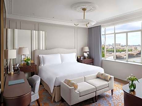 Pierwotnie otwarty w 1889 roku, światowej sławy hotel Savoy położony jest nad brzegiem Tamizy, niecałe 5 minut spacerem od Muzeum Brytyjskiego i Opery Królewskiej. Hotel odwiedzali niegdyś tacy artyści jak Sir Winston Churchill, Frank Sinatra i Katherine Hepburn. Idealnie położony w sercu ekscytującego Londynu, hotel Savoy znajduje się zaledwie 5 minut spacerem od Covent Garden, a do najpopularniejszych modnych sklepów w Knightsbridge i Mayfair można dojechać komunikacją miejską w zaledwie 20 minut. 195 pokoi gościnnych i 73 apartamenty w hotelu Savoy, wyposażonych w eleganckie marmurowe łazienki, urządzone są w stylu edwardiańskim lub art déco, łącząc komfort i elegancję z dyskretną technologią. Z wielu pokoi roztacza się zapierający dech w piersiach widok na Tamizę. W hotelu Savoy znajdują się jedne z najbardziej znanych londyńskich restauracji i barów. Gallery, tętniąca życiem przestrzeń w sercu hotelu, jest idealnym miejscem na drinka i posiłek. Piękna przestrzeń płynnie łączy współczesny styl, pozostając jednocześnie wierna naszemu ukochanemu dziedzictwu. Innowacyjne menu, starannie skomponowane przez nasz utalentowany zespół kulinarny, kusi tradycyjnymi przepisami z nowoczesnym akcentem. Zapraszamy na legendarną popołudniową herbatę w restauracji Savoy w Gallery, a także na śniadanie, kawę, lunch, koktajl i kolację. Podczas wizyty odwiedź jedną z trzech restauracji Gordona Ramsaya, do wyboru Savoy Grill, The River Restaurant i Restaurant 1890. Koniecznie spędź czas w American Bar (powszechnie uważanym za jeden z najlepszych barów hotelowych na świecie) na klasycznego koktajlu lub delektuj się koktajlem z postaciami z bajek w teatralnym Beaufort Bar.