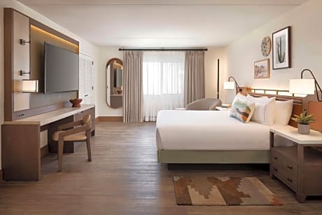 Surrounded by 2 championship golf courses, this hotel in Scottsdale, Arizona offers a luxury spa. Salt River Fields is 10 minutes' drive away. The Scottsdale Resort & Spa, Curio Collection by Hilton features guest rooms with large marble bathrooms and wood furniture. The elegant rooms include a 42-inch flat-screen TV with in-room movies and free Wi-Fi. Deluxe toiletries are provided for guests comfort. Two outdoor pools are available at the The Scottsdale Resort & Spa, Curio Collection by Hilton. Guests can use the gym or the 7-mile jogging track. Luna Spa offers a variety of body and beauty treatments. La Fogata Restauran offers breakfast, lunch and dinner and The Madam serves coffee and cocktails. Twisted Vine Pool Bar and Grill overlooks the pool area.