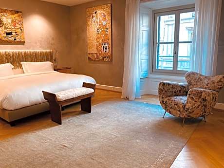 Welcome to Galleria Vik Milano – Townhouse Galleria where we offer our guests: • Historical Monument Living: Galleria Vik Milano is within one of Italy’s most iconic landmarks. • Singular Design: Each room is a design and architectural surprise! Each floor and room offer a new experience. • Original & Diverse Artwork & Furnishings: Galleria Vik Milano is home to an extensive collection of art by over 100 artists and design furniture. • Unique Views: Chose spectacular views into Galleria Vittorio Emanuele II, some sweeping all the way to Duomo Square, or Scala Square or Via Silvio Pellico, as well as into the charming courtyards of the Galleria. • Shopping: Galleria Vittorio Emanuele II is home to most of the celebrated fashion brands in the world including the original Prada! • Epicurean: Vik Pellico Otto, our signature restaurant overlooking the Octagono dome of the Galleria, gives our guests a birds’ eye view of life in the heart of Milano is open for breakfast, lunch, aperitivos and dinner. Il Dodici Gatti, located on the 6th floor above the structure of the Galleria with a terrace and views out over the cityscape of Milan is a favorite Italian pizzeria of the Milanese. • Personalized Service: Our team will treat you like our friends, like guests staying in our home. Use your mobile phone to communicate with them inside the hotel or wherever you are in Milan by What’s App or text messages. • We offer a virtual check-in and check-out, so you won’t waste a minute in Milan!