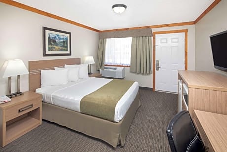 Featuring an indoor pool with water slide and hot tub, Travelodge by Wyndham Golden Sportsman Lodge is off the Trans-Canada Highway and is within a 10-minute drive of Kicking Horse Mountain Resort. Each room at the Travelodge by Wyndham Golden Sportsman Lodge feature flat-screen TVs. Microwaves and refrigerators are also standard in all rooms. Free WiFi is available. Guests can eat outdoors at the picnic area, which features a barbecue pit, outdoor volleyball net and horseshoe pit. The hotel also offers a sauna. At the property, guests can taste a daily complimentary breakfast that includes scrambled eggs, cereals, waffles, yogurt, muffins, coffee and tea. Travelodge by Wyndham Golden Sportsman Lodge is within a 10-minute drive of the Golden Airport. The Golden Cinema is 1.9 mi from the property.