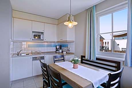 This family-friendly holiday apartment complex offers individually designed, self-catering apartments on Sylt. There are 2 restaurants, a bar and a large spa area including a large indoor pool. All apartments at the TUI BLUE Sylt feature a terrace or balcony and a fully equipped kitchenette. Some offer wonderful views of the tideland and sea. Free WiFi is available in all areas. Children of all ages will enjoy the various possibilities of games and entertainment in the Kids Club. Relax in the spa area, where you will find a pool, saunas, a steam bath . Work out in the gym, or book yourself cosmetic treatments and massages. In the evening, try the delicious international specialties and freshly prepared fish dishes in the Villaggio and The Restaurant. The Bar invites you to enjoy a drink next to the fireplace. We also provide the option of breakfast and half-board, ensuring a stress-free stay with delicious meals catered to your needs.