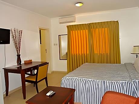 At Ave Maria Hotel, exceptional service and top-notch amenities create a memorable experience for guests.Complimentary internet access is available in the hotel to ensure you stay connected during your visit. Arrange your trips to and from the airport using the hotel's convenient transportation services booking.Amenities at shuttle offered by Ave Maria Hotel simplify the organization of your excursions, tourist activities, and other adventures in Accra. Complimentary parking is available for guests.Continuously receive the support you require through front desk amenities such as concierge service, express check-in or check-out, luggage storage and safety deposit boxes. Always look your best in your preferred attire with the dry cleaning service and laundry service provided at Ave Maria Hotel. Craving relaxation? In-room amenities such as 24-hour room service, room service and daily housekeeping allow you to maximize your time spent inside the room. Due to health concerns, smoking is strictly prohibited within the entire premises of hotel.For the health and well-being of all guests and staff, smoking is restricted exclusively to assigned zones. Accommodations come equipped with all the conveniences required for a restful night's slumber.A selection of rooms feature linen service, blackout curtains and air conditioning to ensure your comfort and convenience.A few chosen rooms are equipped with television and cable TV to ensure guest amusement.In certain rooms, the hotel offers visitors access to a refrigerator, a coffee or tea maker, bottled water and mini bar.At Ave Maria Hotel, select bathrooms are equipped with toiletries to enhance your comfort during your stay. A delightful breakfast is the perfect way to begin your day, and at Ave Maria Hotel, you can always indulge in a scrumptious meal on-site.Allow your journey to be free from the pangs of hunger! On-site eateries offer delicious and accessible meal choices. An evening spent at hotel's bar can offer as much enjoyment as venturing out with your fellow travelers. Are you a fan of preparing your own dishes? You'll certainly appreciate the onsite BBQ facilities and shared kitchen for your culinary needs.At Ave Maria Hotel, guests can take pleasure in the delightful recreational amenities provided for their entertainment.Conclude your days in complete tranquility by paying a visit to massage, hot tub and salon for ultimate relaxation.At Ave Maria Hotel, a wide array of amenities guarantees a fulfilling experience throughout your visit. Make your holiday truly memorable by taking a rejuvenating plunge into the pool.At Ave Maria Hotel, the poolside bar provides an excellent incentive to enjoy extended hours in your swimwear.At the hotel fitness center, you have the option to engage in your daily exercise routine or simply alleviate your jet lag by breaking a sweat.