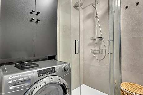 This apartment features 1 living room, 1 separate bedroom and 1 bathroom with a walk-in shower. The well-fitted kitchen has a stovetop, a refrigerator, a dishwasher and kitchenware. The apartment features parquet floors, a seating area with a flat-screen TV, soundproof walls, a coffee machine as well as an inner courtyard view. The unit has 3 beds.