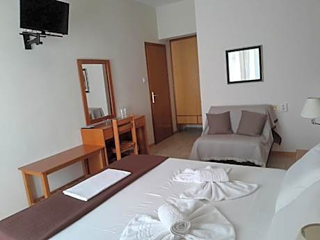 Located in Limenas, a 11-minute walk from Limenas Beach, Vanta Hotel has accommodations with a garden, free private parking, a shared lounge and a terrace. With a bar, the 2-star hotel has air-conditioned rooms with free WiFi, each with a private bathroom. Some accommodations at the property have a balcony with a mountain view. At the hotel, rooms come with a closetand a patio with a city view. The rooms in Vanta Hotel are equipped with a flat-screen TV and a hairdryer. Guests at the accommodation can enjoy a continental breakfast. Languages spoken at the reception include Greek and English. Popular points of interest near Vanta Hotel include Port of Thassos, Agios Athanasios and Archaeological Museum. Kavala International Airport is 14 miles from the property.