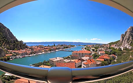 Hotel Villa Dvor, rebuilt on the place of the old Villa Dvor above Omiš, on the stony slope of the Mountains of Mosor and the Omiš Dinara, by the River Cetina, is only 12 mi far away from Split. The hotel is surrounded by a nice beach area and only 2133 feet from the sandy city beach. The hotel features 23 rooms, each offering a Plasma TV and panoramic view of the sea, mountains Mosor and Dinara and River Cetina. The superb restaurant, Knez, is capable of satisfying the most selective of gourmets and serves a rich American buffet breakfast (served also on the terrace), fish and meat specialties and traditional meals from "Poljica". The surroundings offer an endless choice of beautiful settings and walks.