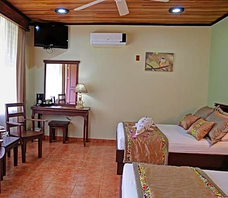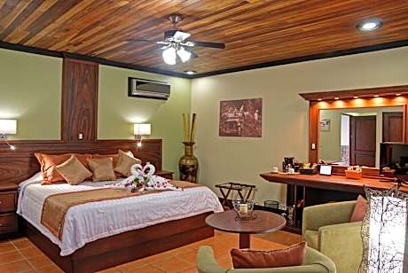 Set in lush tropical gardens, at the foot of Costa Rica’s Arenal the Volcano Lodge, Hotel & Thermal Experience offers an outdoor pool and free Wi-Fi zone. Air-conditioned rooms have a terrace. Each room features tiled floors and comes with a desk, coffee maker and cable TV. The private bathroom includes a hairdryer and shower. Breakfast is available at the lodge and it is included on the rate. There is a bar, restaurant and snack bar. Room service is available. The lodge offers free parking. You can arrange excursions like a canopy tour or a visit to nearby hot springs.