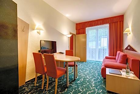 Waldhotel Vogtland features a fitness center, garden, a shared lounge and terrace in Klingenthal. Providing a restaurant, the property also has a bar, as well as a sauna and a hammam. The property is non-smoking throughout and is located 5.9 miles from German Space Travel Exhibition. All guest rooms at the hotel are equipped with a seating area, a flat-screen TV and a safety deposit box. With a private bathroom equipped with a shower and a hairdryer, rooms at Waldhotel Vogtland also have free WiFi, while selected rooms will provide you with a balcony. All rooms feature a desk. A buffet breakfast is available at the accommodation. At Waldhotel Vogtland guests are welcome to use a spa center. Guests at the hotel will be able to enjoy activities in and around Klingenthal, like hiking, skiing and cycling. Göltzsch Viaduct is 23 miles from Waldhotel Vogtland, while Market Colonnade is 30 miles away.