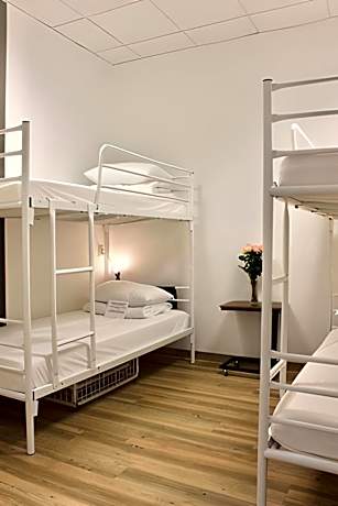 Rooms are 12 square yards. Single bed in a 10-person male dormitory with shared bathroom