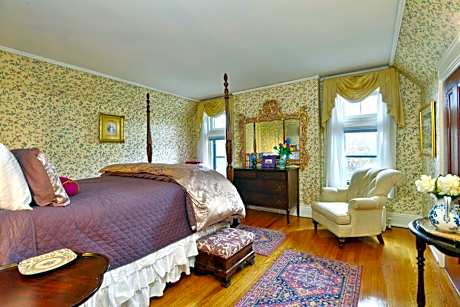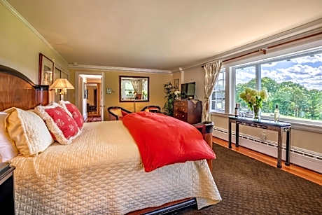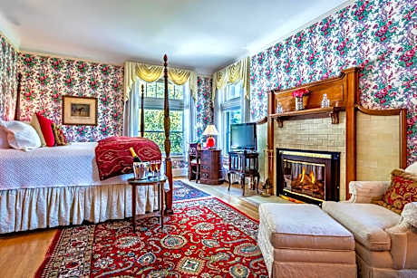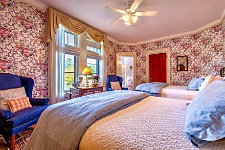 These rooms are located on the third floor of the Wilburton Mansion and feature views of the valley or the estate. Decorated with historic floral wallpaper and antiques, each room has a private bathroom with shower (private bath may be across the hall), flat-screen TV, free WiFi, and window air conditioning units.
