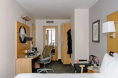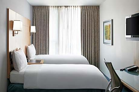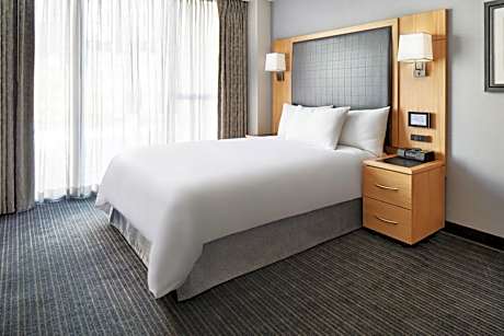 This New York City hotel is opposite of Memorial Plaza and within 2133 feet of Battery Park. The hotel offers modern rooms with free WiFi and flat-screen LCD TVs. Each of the rooms at the New York World Center Hotel is decorated in neutral tones and includes a desk. Guests can charge and listen to their iPod on the iPod docking station or adjust the room temperature with the bedside touch screen monitor. A fitness center and a 24-hour concierge staff are available at the World Center Hotel. Free bottled water stations are also located on each floor. The hotel’s indoor/outdoor rooftop restaurant, View of the World Terrace Club, is located on the 20th floor and serves contemporary American cuisine. The Club Living Rooms offers free refreshments. The World Center Hotel is within 0.6 mi of the Staten Island Ferry station and the Financial District. The Cortlandt Street Subway Station is 1066 feet away.