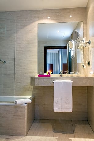 This cozy, functional room features a modern, warm design. It has air-conditioning and central heating, and offers satellite TV, a pillow menu and a mini-bar. There is a safe, a desk and free Wi-Fi and a private bathroom with hairdryer.