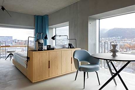 Newly built in 2016, Placid Hotel Zurich offers double rooms and suites on the 5 top floors of a 12-floor business tower in Zürich Albisrieden-Altstetten. Free Wi-Fi is provided throughout the property. All rooms come in a timeless design with precious materials and feature a flat-screen TV, a digital concierge service with an iPad, a seating area and a coffee machine with complimentary coffee capsules. They have floor-to-ceiling windows, which can be opened. The bathroom is separated from the room by a glass wall integrating it to the wholeness of the room and features a shower, a hairdryer and free toiletries. The rooms offer panoramic views of Zurich city and the Alps. The restaurant Buckhuser is a combination of a lounge, a bar and a bistro and serves newly interpreted classics of Swiss cuisine, as well as international specialties, made from fresh, seasonal and regional products. The area is popular for cycling and the property offers free use of iconic design bikes. Child care can be arranged at a surcharge and on request. The on site fitness center is available to guests and features panoramic views over the city of Zurich. Zurich airport can be reached within 30 minutes by public transport and Zurich main station is a 20-minute ride away.