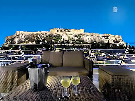 - Rooftop bar with stunning Acropolis and city views