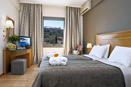 Each guest room at Plaka Hotel is a blend of comfort and convenience, featuring tasteful decorations, a mini-bar, safe, Wi-Fi, and air conditioning. Select rooms also boast balconies with inspiring views, allowing for private moments of awe against the backdrop of Athens' iconic landmarks.