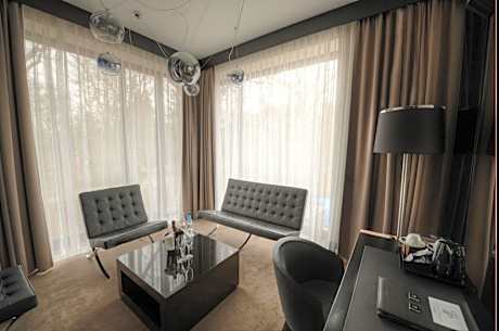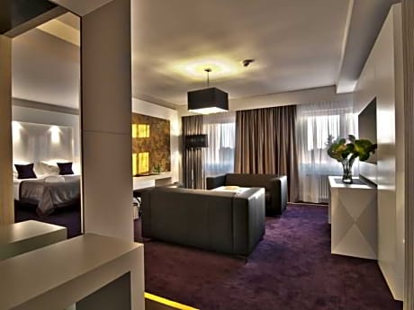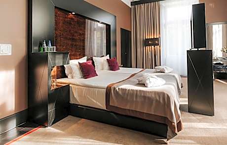 "Platinum Palace Boutique Hotel & SPA is a five-star hotel classified by the French guide La Liste as one of the five best hotels in Poland". The property is located 3.1 mi from the Main Market Square and 2.8 mi from the Main Train Station. The airport can be reached within 17 minutes by car and the A4 motorway is a 6-minute drive away. Aleja Bielany Shopping center is an 11-minute drive away. All air-conditioned rooms come with marble bathroom floors and free Wi-Fi. All rooms at the Platinum are individually designed and come with high class furniture and marble bathrooms. Each has satellite TV, a mini-bar and a safety deposit box. A varied breakfast is served every morning at the Platinum Restaurant, which serves fusion cuisine later in the day. Guests can enjoy a wide selection of whiskey at the hotel bar, the Insomnia. Guests of the Platinum Palace are offered free access to the wellness and fitness center, 2 saunas and a hot tub. Front desk staff is available 24 hours a day and can arrange for concierge services. There are two free electric car charging stations on site for guests with a Porsche electric car. For other guests, the flat fee is PLN 50 + VAT, regardless of the car type and amount of energy used. Platinum Palace is located within just an 8-minute drive of the beautiful Old Town with many cafés and pubs, and a 6 minute drive from the A4 motorway. The municipal football stadium is 5.6 mi away.