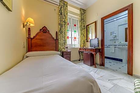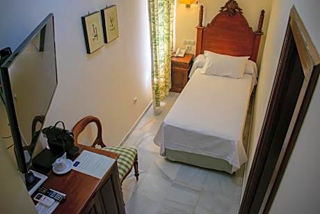 Air-conditioned room with a single bed, laptop safe, private bathroom and flat-screen satellite TV.