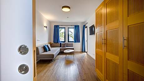 Playitas Aparthotel, part of Playitas Resort, is the ideal choice for active vacationers, families, athletes, and anyone seeking an unforgettable holiday. A dedicated team of professionals ensures your stay feels like a home away from home, with weekly sports programs tailored to both children and adults. State-of-the-art facilities, exciting events, and specialized camps are offered throughout the year. Healthy, sustainably-sourced cuisine and our Playitas Nature initiative reflect our core values. Situated on a picturesque bay in southeastern Fuerteventura, next to the charming fishing village of Las Playitas, Europe's leading sports resort boasts an impressive range of activities, including swimming, cycling, triathlon, and golf. A diverse sports program features aerobics, spinning, body toning, dance, aqua aerobics, yoga, and more. Our facilities include a 700m² gym, an eight-lane Olympic-sized pool, an 18-hole golf course with driving range and PGA Golf Academy, five tennis courts, four padel courts, two multi-courts, a yoga shala, and a cycling center with over 200 road bikes, mountain bikes, e-bikes, and fat bikes. Water sports enthusiasts can enjoy stand-up paddleboarding, kayaking, and diving. Playitas Resort is a popular training destination for athletes preparing for international competitions. During select weeks, our complimentary Kids Sports Academy offers children and teenagers aged 5-15 the opportunity to explore various sports and make new friends. The resort offers a buffet restaurant, two à la carte restaurants, and four bars, as well as two large pools, a baby pool, a water slide, and a Kids Club. Additional amenities include a sports shop, supermarket, car rental service, and multilingual medical services.