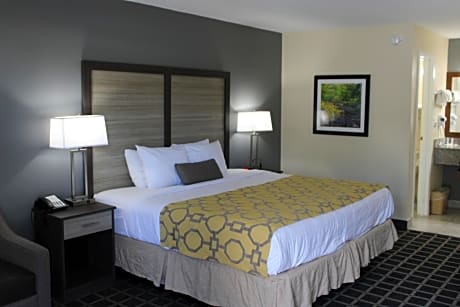 The Baymont by Wyndham Morganton is located off Interstate 40, less than 3 miles from the city center. Guests will enjoy free Wi-Fi in all rooms as well as a microwave and refrigerator. Cable TV is featured in the simply decorated guestrooms of the Baymont by Wyndham Morganton hotel. The bedding features colorful patterns and all rooms have a seating area. A 24-hour reception is available at the Baymont by Wyndham Morganton and the entire hotel is air conditioned for added comfort during the warmer months. Free parking is available on site. This hotel is 7 miles from the Waldensian Heritage Museum and 30 minutes’ drive fro Lake James State Park. Hickory city center is 20 miles away.