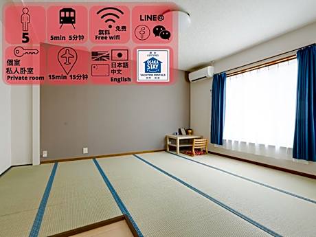The triple room offers air conditioning, tatami, as well as a shared bathroom featuring a shower and a hairdryer. The unit offers 4 futons.