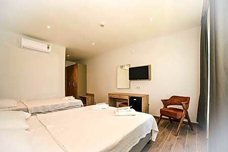 This quadruple room is air-conditioned and features a private bathroom, a mini-bar and sea views. The unit offers 3 beds.
